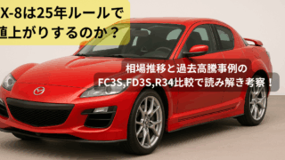 RX8は25年ルールで値上がりするのか?相場推移と過去高騰事例のFC3S,FD3S,R34比較で読み解き考察!